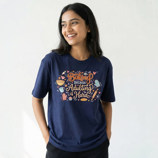 Adulting Is Hard- Navy Blue Baking Round Neck Tshirt