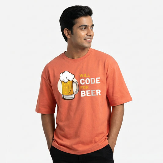 Will Code For Beer - Coral Coding Oversized Tshirt