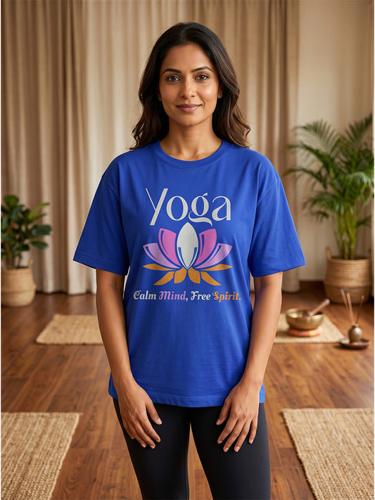 Calm Mind Free Spirit- Royal Blue Round Neck Yoga T-shirt