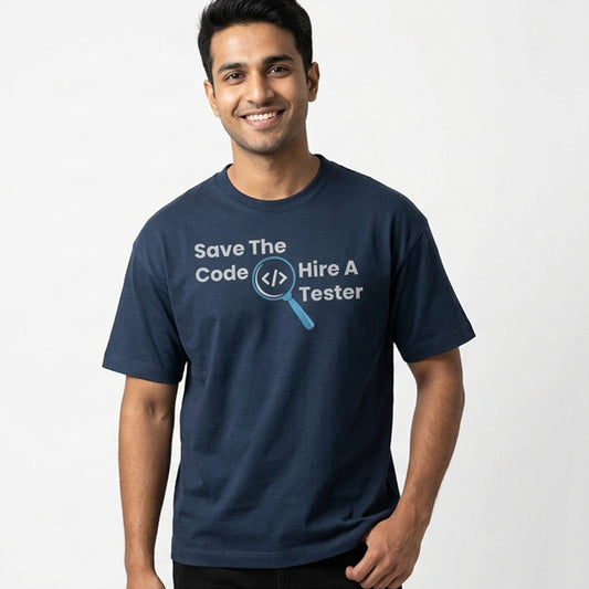 Hire A Tester- Navy Blue Round Neck Coding T-shirt