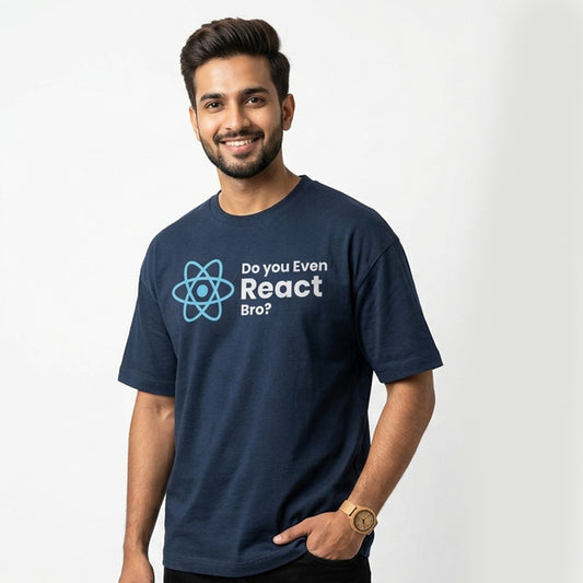 Do you Even React- Navy Blue Round Neck Coding T-shirt
