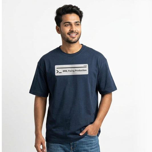 Fixing Production- Navy Blue Round Neck Coding T-shirt