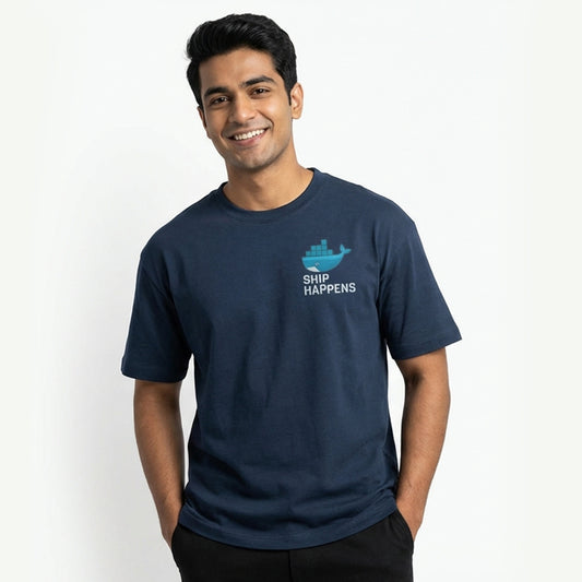 Ship Happens - Navy Blue Coding Round Neck T-shirt