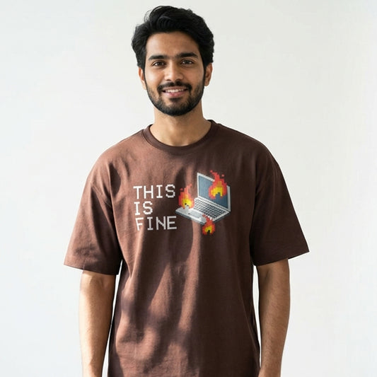 This is fine - Coffee Brown Coding Round Neck T-shirt
