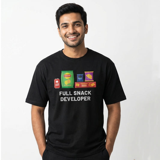 Full Snack Developer- Black Round Neck Coding T-shirt