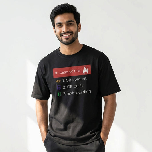 In Case of Fire- Black Round Neck Coding T-shirt