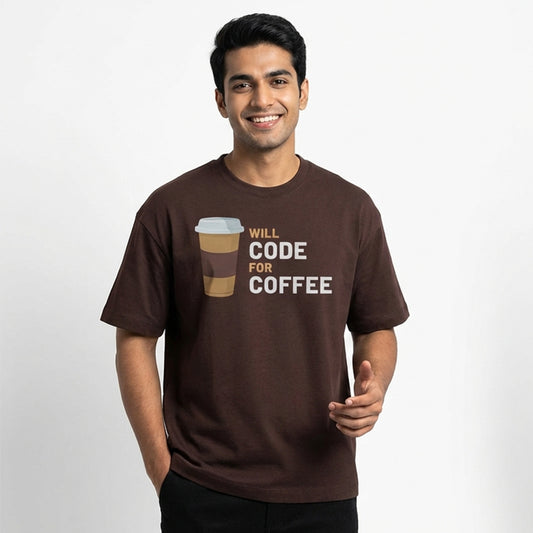 Will Code for Coffee- Coffee Brown Round Neck Coding T-shirt