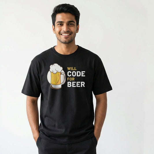 Will Code for Beer- Black Round Neck Coding T-shirt
