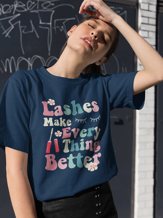 Lashes for Better- Navy Blue Round Neck Unisex Makeup Artist T-shirt