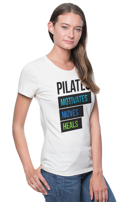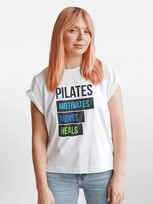 Pilates Motivates- White Round Neck Women's Pilates T-shirt