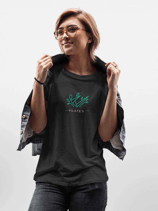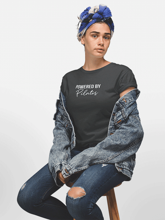 Powered By Pilates- Pink Round Neck Women's Pilates T-shirt