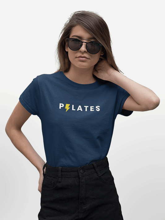 Pilates Vertical- Navy Blue Round Neck Women's Pilates T-shirt