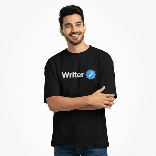 Writer Verified- Black Round Neck, Oversized Writer T-shirt