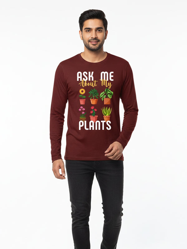 Ask me about my plants- Coffee Brown Round Neck, Full Sleeves Garden T-shirt