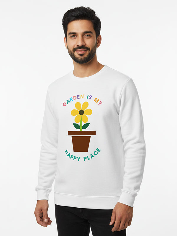 Garden Happy Place- White Round Neck Garden Sweatshirt